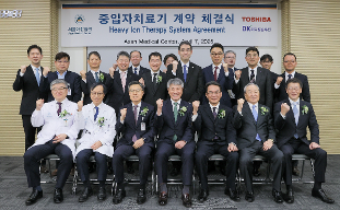 서울아산병원은 중입자 치료기 도입을 위해 4월 7일(월) 일본 도시바ESS-DK메디칼솔루션 컨소시엄과 계약을 체결하고 2031년 가동을 목표로 본격적인 준비에 돌입했다.