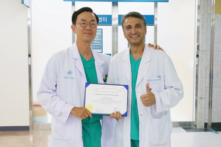 오스트리아 빈에서 6개월 동안 연수를 받으며 두경부 재건수술을 많이 경험했지만 안면마비 재건은 거의 접하지 못했어요. 당시 지도교수님이 한국에서 공부를 더 해보는 게 어떻겠냐고 제안하셨죠. 한국에서는 얼굴 근육이 정교하게 움직일 수 있도록 더 많은 근육을 이식하는데, 특히 서울아산병원 오태석 교수님이 이 분야 경험이 풍부하고 세계적으로 손꼽히는 전문가라고 추천해 주셨습니다. 그래서 주저하지 않고 서울아산병원으로 향했습니다.