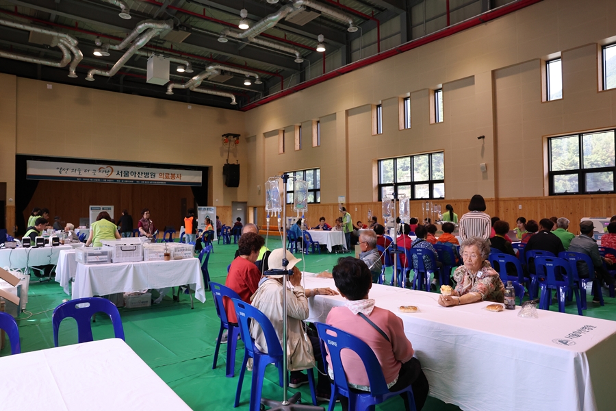 서울아산병원 직원봉사단은 정선군보건소와 협력해 민둥산문화체육센터에 간이 진료소를 설치하고 지역 주민 160여 명을 대상으로 ▲엑스레이 촬영 ▲혈액·소변 검사 ▲심전도 검사 ▲영양수액 투여 ▲생활습관 상담 등을 진행했다. 검사 결과에 따라 약을 처방하고 생활관리 지침을 안내했으며 정밀검사와 치료가 필요한 환자는 인근 의료기관에 의뢰했다.