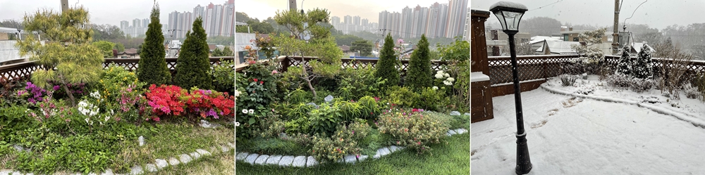 이와 같은 상황에서 정원이라도 가꿔보면 어떨까. 입춘 절기에는 아직 찬 공기 속에서도 길어진 낮, 높아진 남중고도 덕분에 매화의 꽃망울과 조팝나무의 새순을 볼 수 있고, 채송화와 나팔꽃이 피는 것을 보며 여름이 가까이 왔음을 느낄 수 있다(사진). 오염되지 않은 토양으로 만든 정원에서 농약 없이 식물을 관리하다 보면 우리가 어느새 잊고 지냈던 꿀벌, 무당벌레, 메뚜기, 땅강아지 등 반가운 손님도 만날 수 있다. 어른들에게는 어린 시절의 추억을, 자라나는 어린이들에게는 좋은 자연 학습의 기회를 선사하는 것이다. 퇴직 후 집에 머무는 분들에게는 원할 때 원하는 만큼 정원을 손질하며 건강하게 소일할 수 있는 기회를 제공하니 그야말로 일석삼조라 할 수 있다.