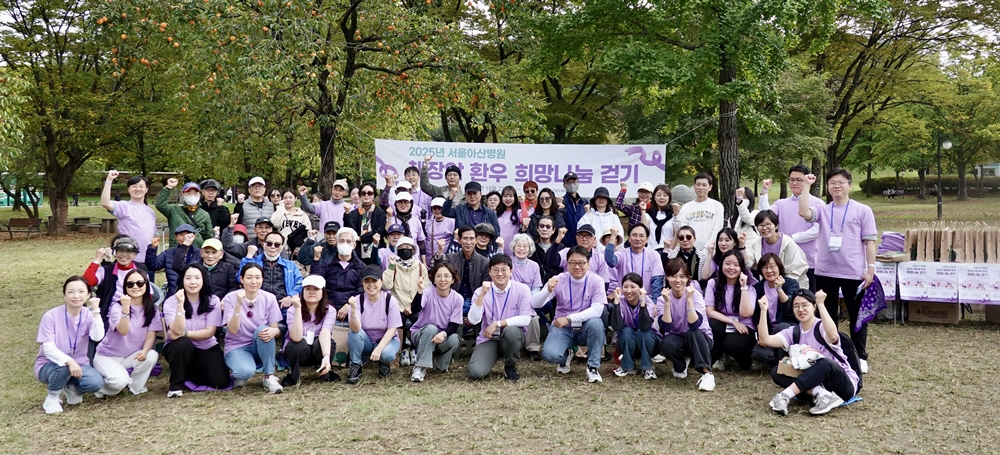 서울아산병원 간담도췌외과가 주최한 ‘췌장암 환우 희망나눔 걷기’ 행사가 10월 22일 올림픽공원에서 열렸다. 이날 행사에는 간담도췌외과 의료진과 서울아산병원에서 췌장암 수술을 받은 환우와 가족 80여 명이 참가했다. 참가자들은 약 2.4km 코스를 함께 걸으며 서로를 응원하고 희망을 나누는 뜻깊은 시간을 가졌다.