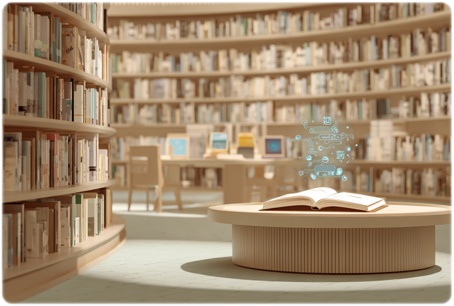 책과 AI, 종이와 알고리즘이 공존하는 공간.