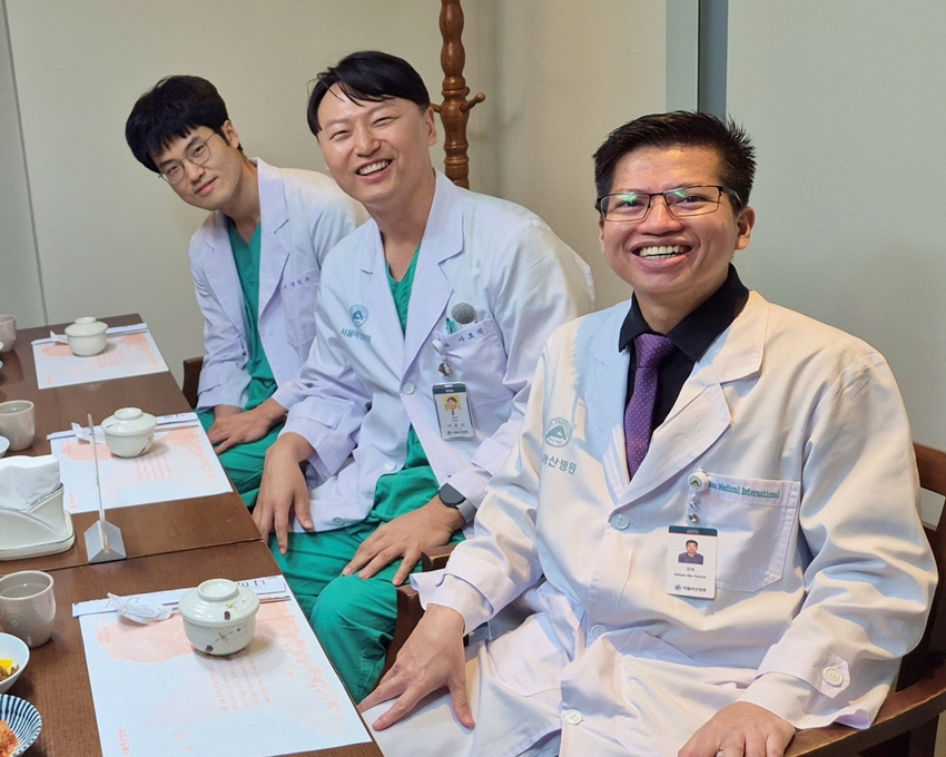 사호석 교수님과 양민규 교수님의 세심한 지도에 감사드립니다. 복잡한 수술 중에도 차분함을 잃지 않는 모습을 보며 많은 것을 배웠습니다. 동료 의사 선생님, 수술실과 병동에서 만난 간호사 선생님들과의 팀워크도 인상적이었습니다. 이곳에서 배운 새로운 기술과 노하우를 말레이시아의 젊은 의사들에게 전하고, 환자 치료에도 적용하고 싶습니다. 나아가 한국과 말레이시아의 안과 전문가들이 긴밀히 협력하고 함께 성장하는 데 힘을 보태고 싶습니다. 연수가 끝난 뒤에도 서울아산병원과의 인연을 계속 이어가며 꾸준히 발전하도록 노력하겠습니다!