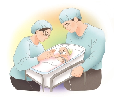 산부인과 이미영 부교수는 정밀 초음파로 태아 상태를 꼼꼼히 살피기 위해 많은 진료시간을 할애했다. 소아심장외과 최은석 부교수와도 만나 상의했다. 심장 구조는 정상이어서 생존 확률은 더 높아질 수 있다며 용기를 건넸다. 혜연 씨 부부는 희망 회로에 기대어 출산을 기다렸다. 그리고 4월 10일. 아이가 태어났다. 붉은 심장은 얇은 막으로만 덮인 채 몸 밖에서 세차게 뛰고 있었다. 임상 경험이 많은 의료진조차 처음 보는 모습이었다. 산모가 받을 충격을 염려해 아이를 바로 보여줄 수 없었다.