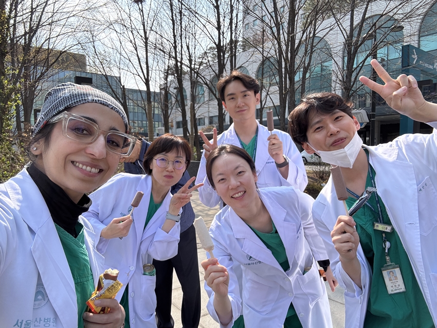 서울아산병원에서의 연수도 이제 7개월 남짓 남았네요. 이곳에서의 시간은 제 인생을 통틀어 가장 소중한 기억으로 남을 것입니다. 고난도 심장 중재시술 노하우는 물론 환자를 생각하는 마음, 동료들을 격려하며 더 나은 성과를 만들어가는 팀워크, 의사로서의 철학까지 가르쳐 주신 박승정 교수님께 감사드립니다. 이곳에서 배운 것을 고국의 동료들과 환자들에게 전하며 의료 발전에 기여하는 의사가 되겠습니다.