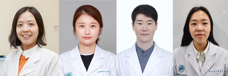 ▲(왼쪽부터) 서울아산병원 종양내과 김정은 교수, 융합의학과 탁은영 교수 · 최지완 박사 · 한규영 연구원
