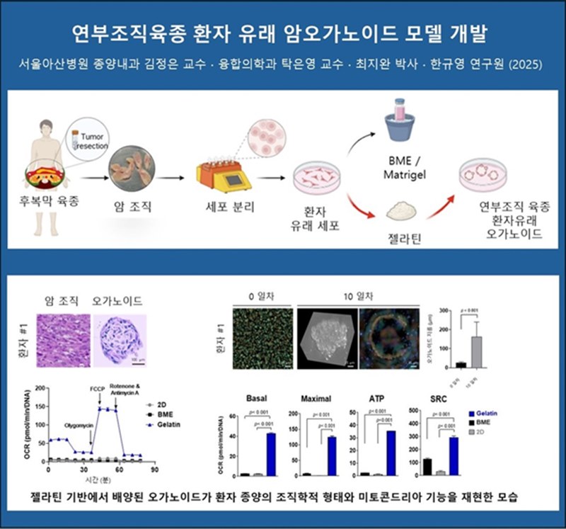 탁은영 울산의대 서울아산병원 융합의학과 교수는 “이번 연구를 통해 기존 방식으로는 구축이 어려웠던 연부조직육종 오가노이드의 기술적 한계를 젤라틴 기반의 3차원 배양 환경을 구축해 해결했다. 새로운 오가노이드 배양 플랫폼은 환자 맞춤형 치료 전략을 수립하는 데 실질적인 도구로 활용될 것으로 기대된다”고 밝혔다.