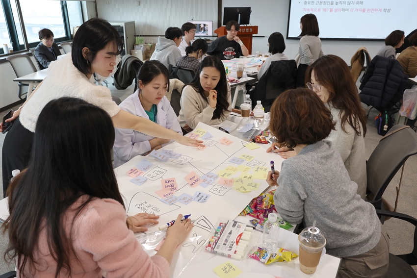 ▲2월 5일 진행된 워크숍 참석자들이 피쉬본 다이어그램을 활용한 ‘근본원인 분석’ 실습을 하고 있다.