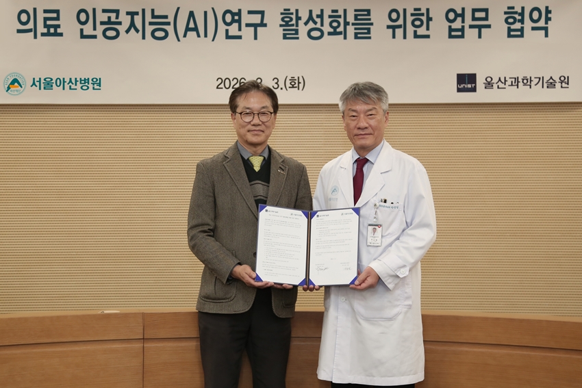 서울아산병원이 울산과학기술원(UNIST)과 손잡고 의료 인공지능(AI) 분야의 혁신적인 연구 성과 창출을 위한 협력 체계를 구축한다.