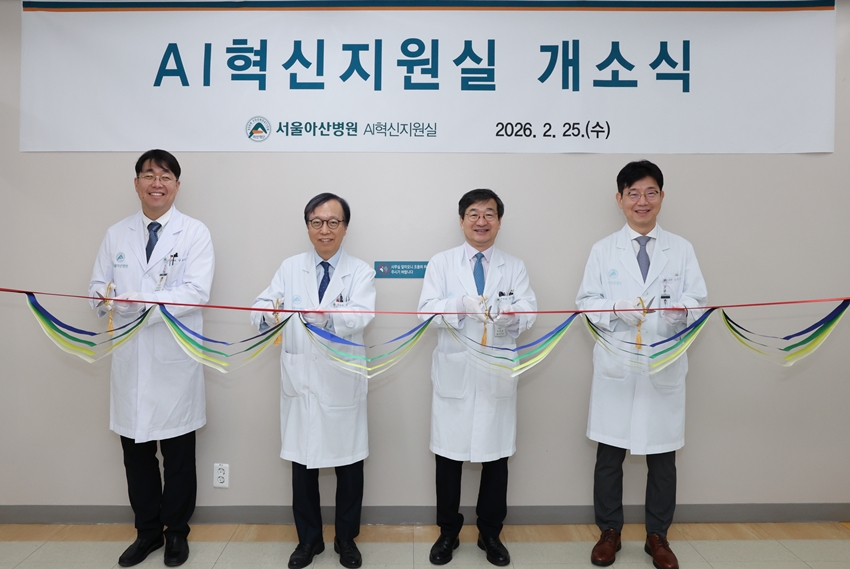 서울아산병원 AI혁신지원실이 2월 25일 개소식을 열고 운영을 본격 시작했다. 개소식에는 이제환 진료부원장, 김태원 연구원장, 김영학 디지털정보혁신본부장, 양동현 AI혁신지원실장 등이 참석했다.