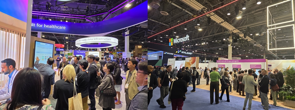 글로벌 빅테크 부스에서는 AI 에이전트들의 도약이 돋보였습니다. 마이크로소프트와 오라클은 환자와의 대화를 실시간으로 분석해 진료기록을 자동으로 작성하고, 연구자료 정리와 수익 분석, 보험 환급까지 처리해 주는 AI 에이전트를 선보였습니다. 북미권 최대 헬스케어 소프트웨어 업체인 에픽시스템즈는 의료진이 자신에게 최적화한 AI를 직접 만들 수 있는 ‘에이전트 팩토리’ 플랫폼을 시연해 큰 호응을 얻었습니다. AWS와 구글은 미국 의료정보보호법(HIPAA)을 준수하는 대규모 의료 데이터 분석 클라우드 플랫폼을 소개하며 강력한 보안 통제 기능을 강조했습니다.