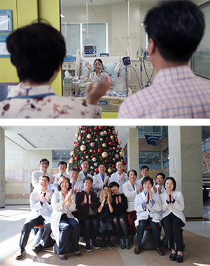 병원에선 임상연구심의위원회와 의료윤리위원회를 개최하고 대한흉부외과학회 등에 생체 폐이식 수술을 설득해 긍정적인 답변을 받았습니다. 병원 내부적으로도 국내 첫 생체 폐이식 강행에 대한 고민은 많았습니다. 하지만 흉부외과 박승일 교수는 “열아홉 살 여자 아이가 숨을 못 쉬어서 우리한테 도와달라는데 도와줘야 하지 않겠습니까? 환자만 보고 갑시다.”라며 의료진을 설득했습니다. 모두의 간절한 바람 덕분인지 2017년 10월 21일. 드디어 생체 폐이식 수술 날짜가 잡혔습니다. 불과 한 달도 되지 않은 기간에 벌어진 기적이었습니다.